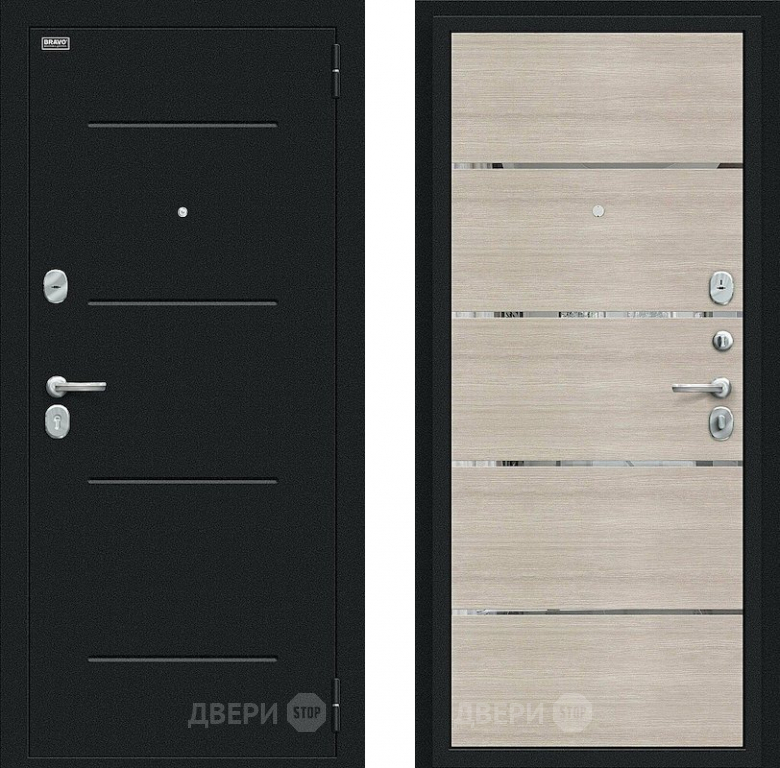 Входная металлическая Дверь Bravo Лайн Букле черное/Cappuccino Veralinga в Одинцово 860х2050 мм