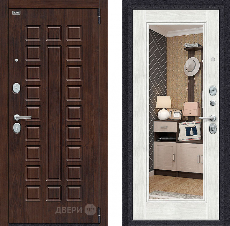 Входная металлическая Дверь Bravo Оптим Урбан с зеркалом Bianco Veralinga в Одинцово 860х2050 мм