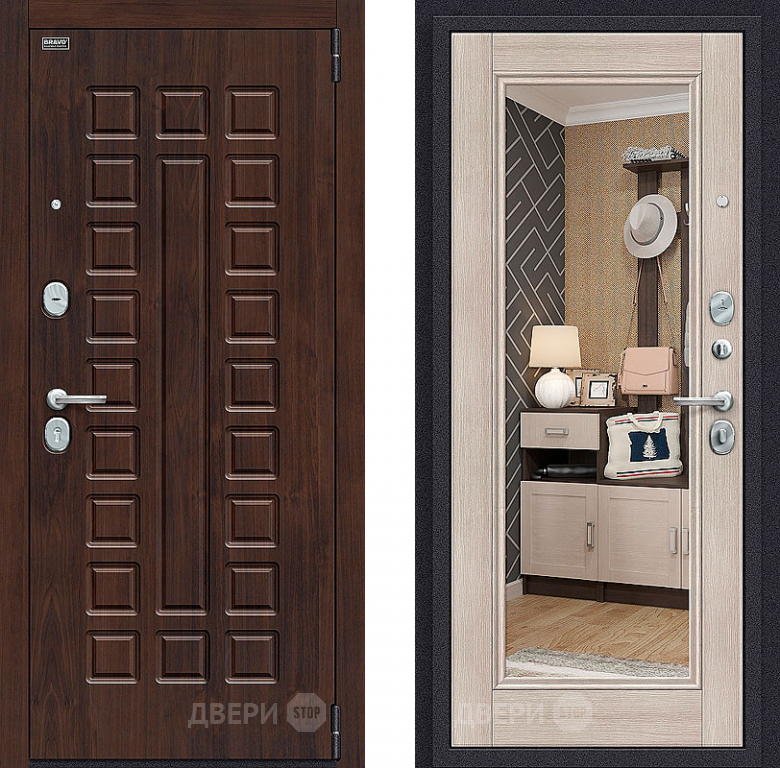 Входная металлическая Дверь Bravo Оптим Урбан с зеркалом Cappuccino Veralinga в Одинцово 860х2050 мм