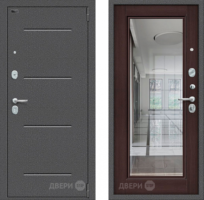 Входная металлическая Дверь Bravo Porta S-2 104/П61 с зеркалом венге в Одинцово 860х2050 мм