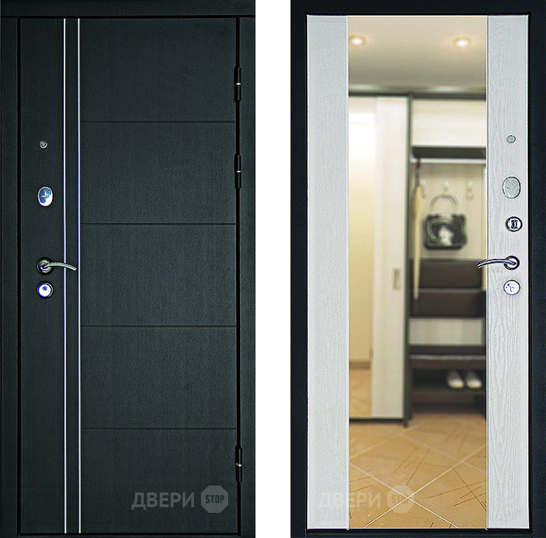 Входная металлическая Дверь Дверной Континент Тепло - Люкс Зеркало Беленый дуб в Одинцово 860х2050 мм