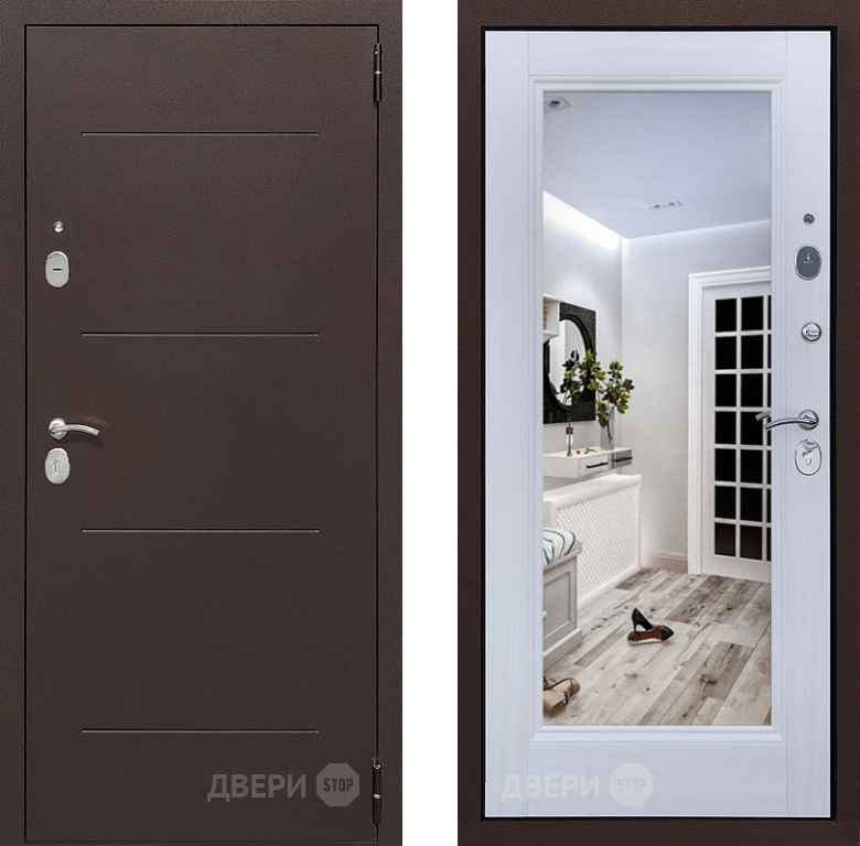 Входная металлическая Дверь Престиж 100 с зеркалом Медь/Лиственница белая в Одинцово 860х2050 мм