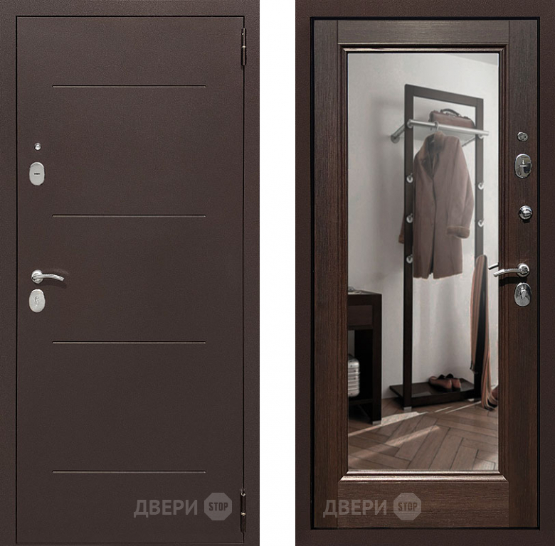 Входная металлическая Дверь Престиж 100 с зеркалом Медь/Венге в Одинцово 860х2050 мм