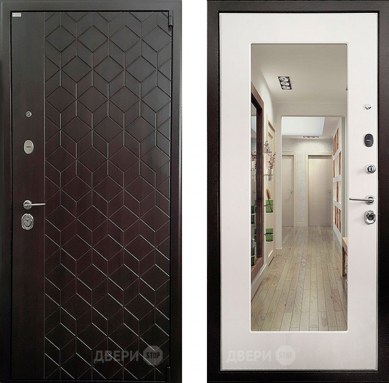 Входная металлическая Дверь Ратибор Квант зеркало 3К Лиственница в Одинцово 860х2050 мм
