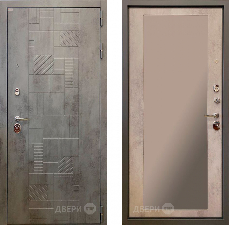 Входная металлическая Дверь Ратибор Тетрис 3К с зеркалом Бетон светлый в Одинцово 860х2050 мм