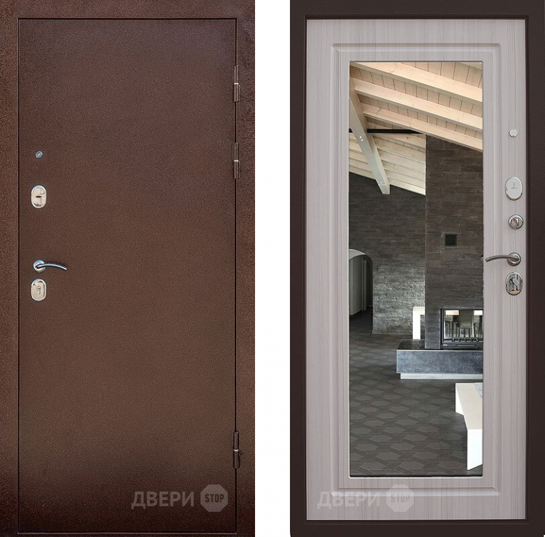 Входная металлическая Дверь Снедо Сити Эш Вайт с зеркалом в Одинцово 860х2050 мм