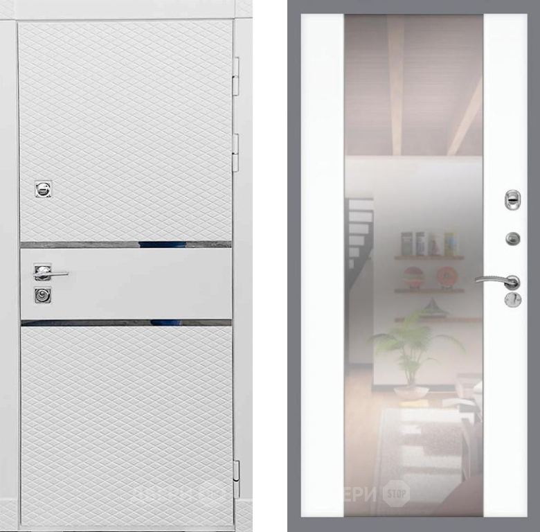Входная Дверь Рекс (REX) 15 Силк Сноу СБ-16 Зеркало Силк Сноу 860x2050 мм