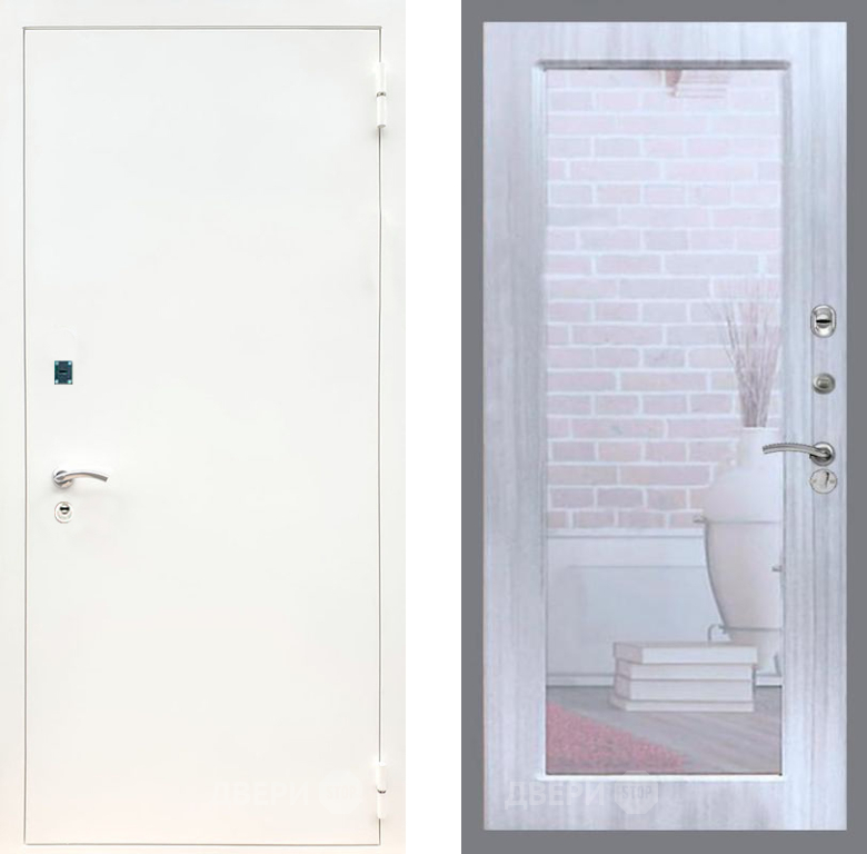 Входная Дверь Рекс (REX) 1А Белая шагрень Зеркало Пастораль Сандал белый 860x2050 мм