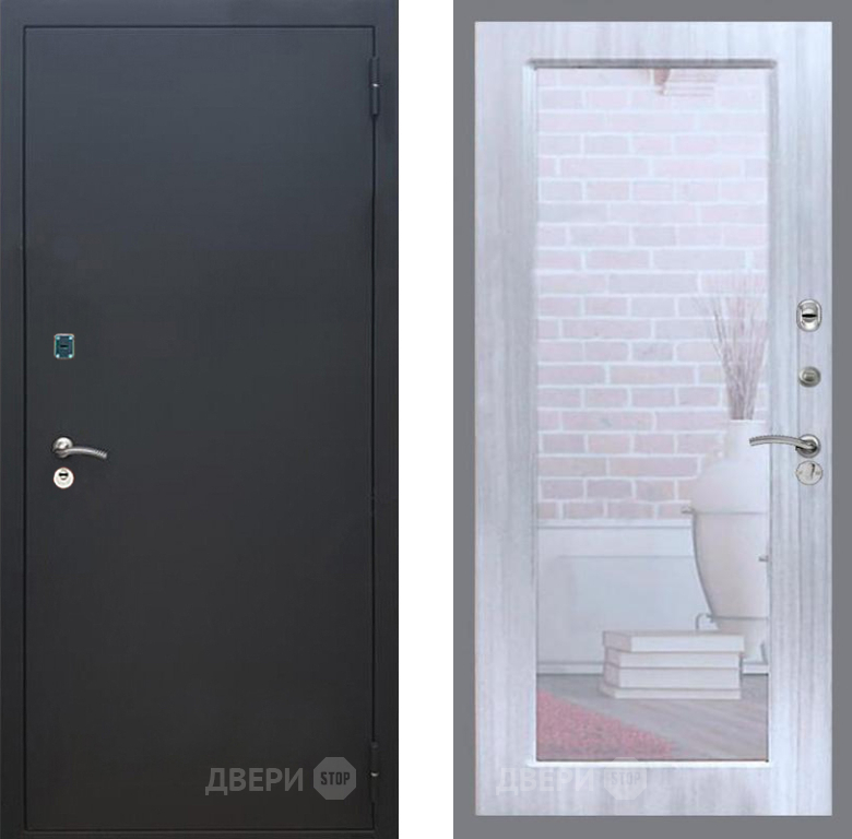 Входная Дверь Рекс (REX) 1A Черный Муар Зеркало Пастораль Сандал белый 960x2050 мм