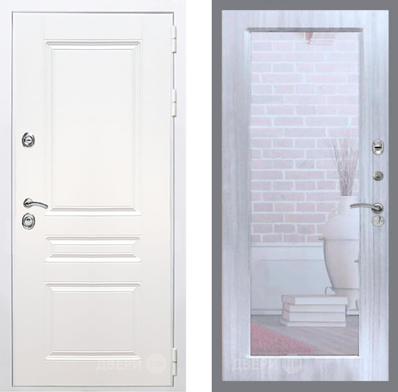 Входная Дверь Рекс (REX) Премиум-н Силк Сноу Зеркало Пастораль Сандал белый 960x2050 мм