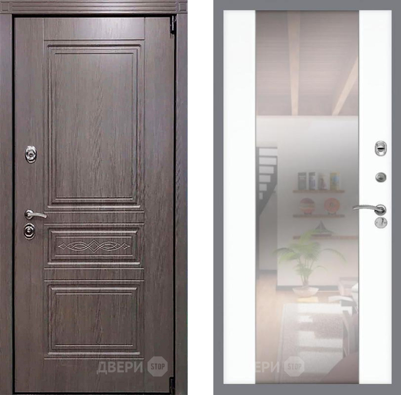 Входная Дверь Рекс (REX) Премиум-S СБ-16 Зеркало Силк Сноу 860x2050 мм