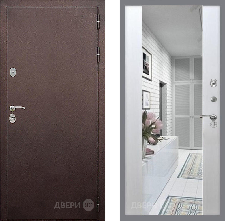 Входная Дверь Стоп КЛАССИК Медь Зеркало СБ-16 Лиственница беж 860x2050 мм
