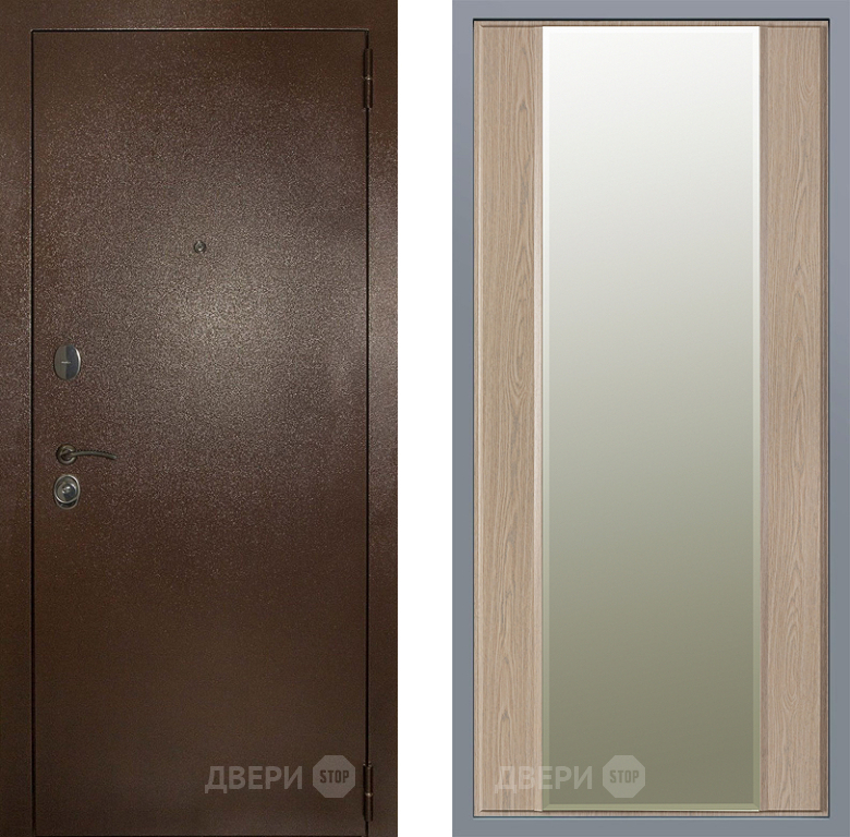 Входная Дверь Заводские двери Эталон 3к антик медь Зеркало Макси Беленый дуб 860x2050 мм