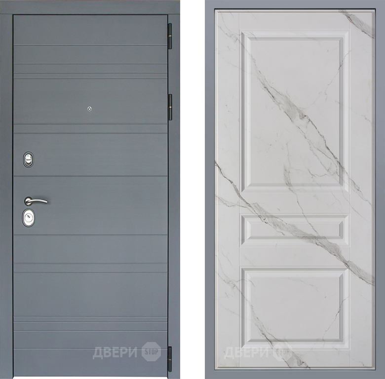 Входная Дверь Заводские двери Лира Софт графит Стокгольм Мрамор белый 860x2050 мм