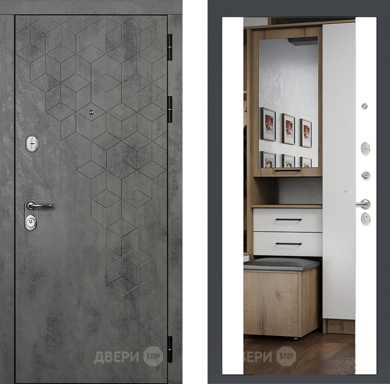 Входная металлическая Райтвер Бетон 1501 с зеркалом Белый матовый в Одинцово 860х2050 мм